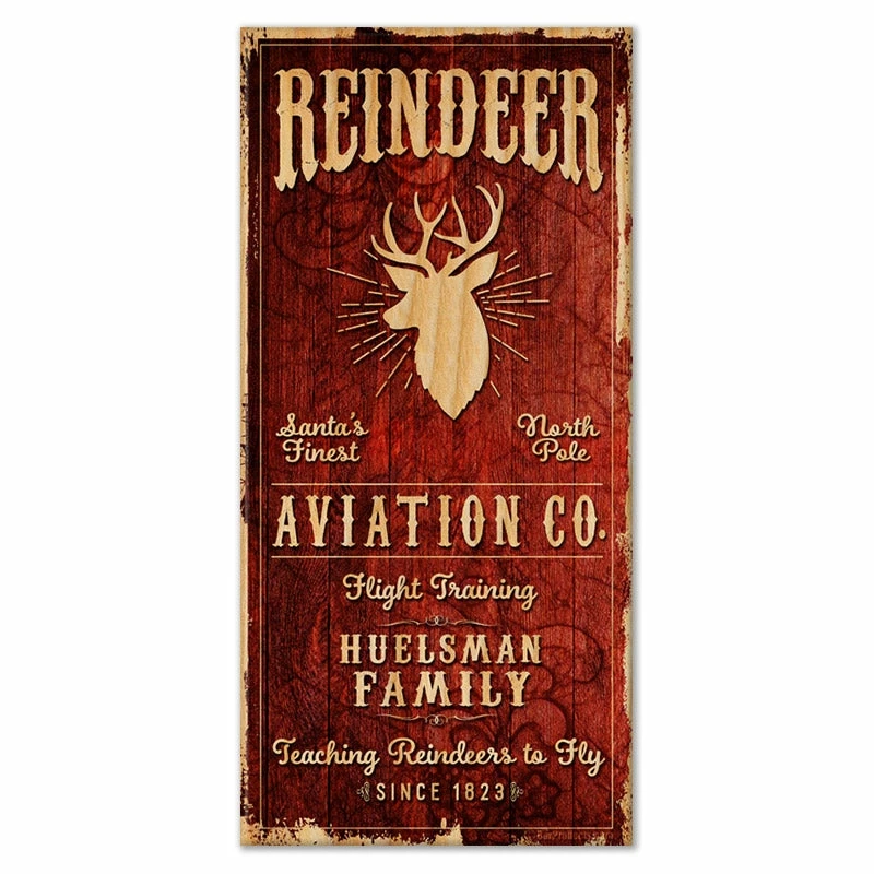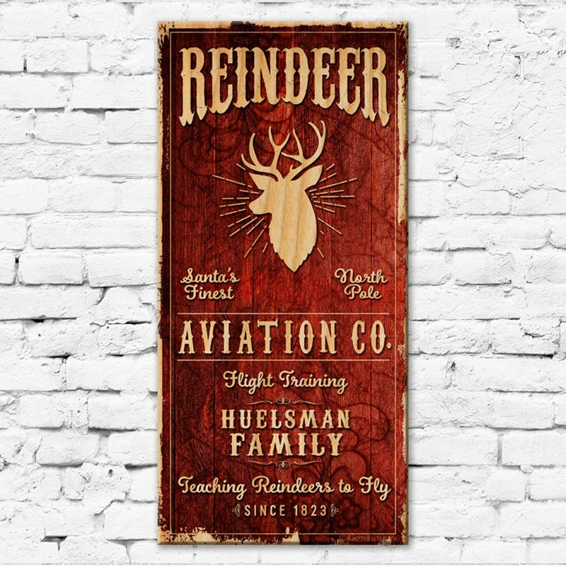 Home and bar decor can certainly set the tone for your guests. They can also make for great conversation pieces! This large Vintage Style “Reindeer Aviation” themed Wooden Sign will do just that. The best part is that it is customizable! All you need to do is simply type in the required fields with your text and we will custom design this very cool, rustic wooden sign just for you. Think about how excited your friends and family will be when they receive this gift personalized with their family name and date.