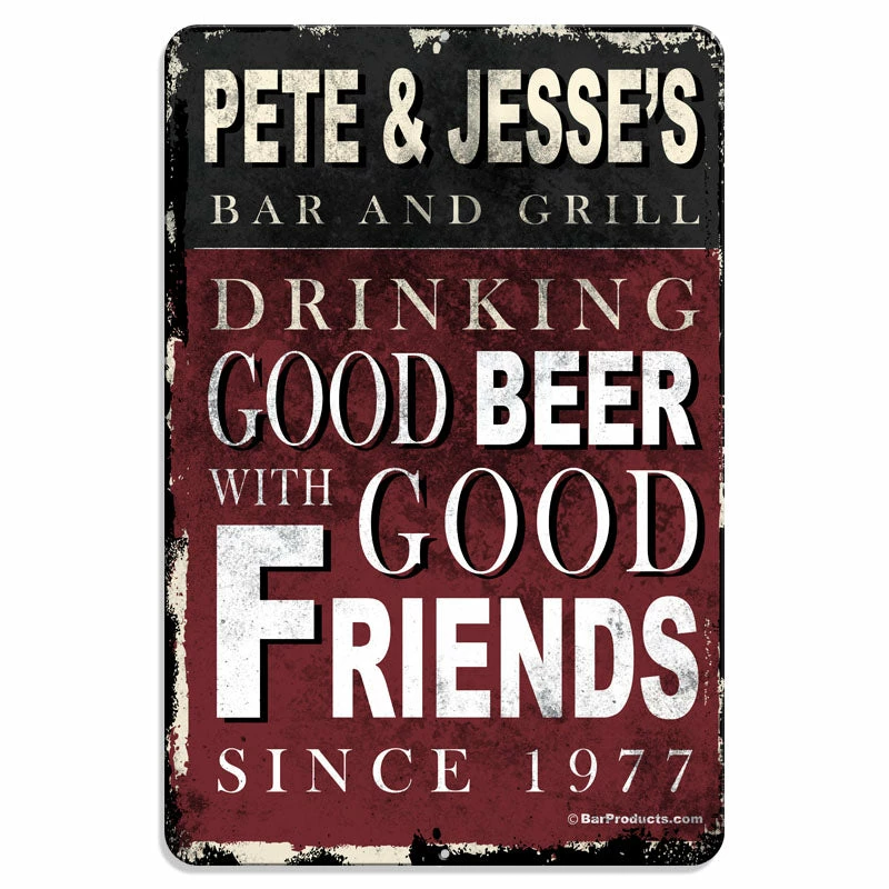 Home and bar decor can certainly set the tone for your guests. They can also make for great conversation pieces! This Vintage Style, retro aluminum bar sign will do just that. The best part is that it is completely customizable. All you need to do is simply type in the required fields with your text and we will custom design this very cool, distressed metal sign for you. Even better, think about how excited your friends and family will be when they receive this customized gift from you? It looks trendy and fun in any bar, home, man cave, kitchen and even outside patio. Made from a rust resistant aluminum, this sign show cases a full color, bold design sure to catch the eye of any passerby.
