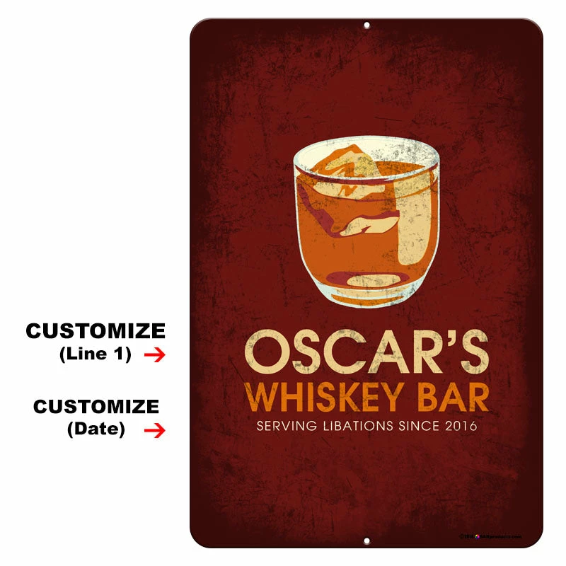 Home and bar decor can certainly set the tone for your guests. They can also make for great conversation pieces! This Vintage Style, retro aluminum bar sign will do just that. The best part is that it is completely customizable. All you need to do is simply type in the required fields with your text and we will custom design this very cool, distressed metal sign for you. Think about how excited your friends and family will be when they receive this gift personalized with their name or favorite phrase. It looks trendy and fun in any bar, home, man cave, kitchen and even outside patio. Made from a rust resistant aluminum, this sign show cases a full color, bold design sure to catch the eye of any passerby.