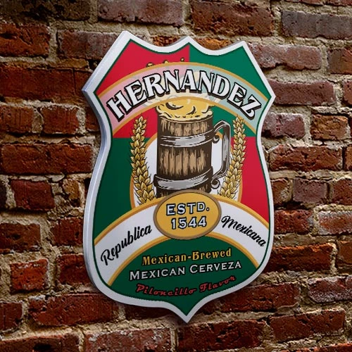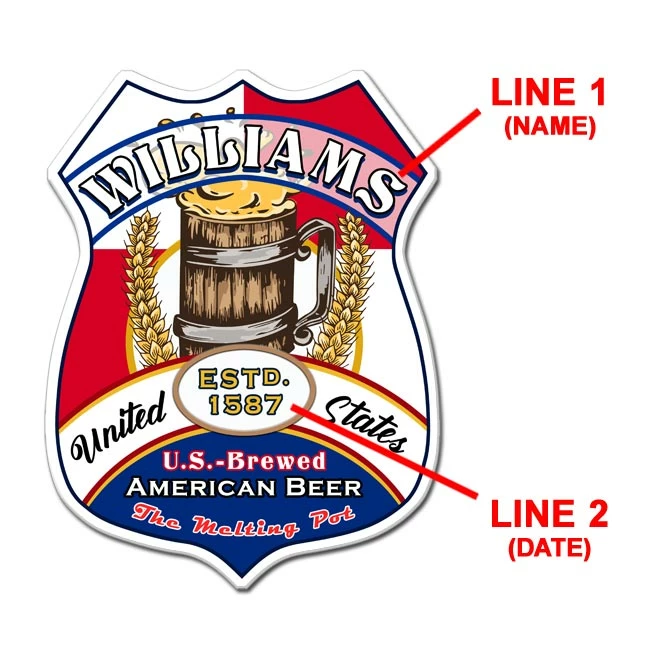 The wooden Beer Heritage Shield Tavern Sign can be customized with any name, place, or favorite ale and year established. This one of a kind sign is great for bars, man caves, family rooms, and more. Chose your favorite nationality or country and show your worldly tastes and appreciation for every beer as it was created through others interpretation of what a real ale is supposed to taste like and represent. Each sign has been created using the colors represented by each nation and is made to order by skilled craftsmen, and double checked for quality before it leaves our warehouse. It is especially perfect to add color and culture to any beer lovers, brewers or pubs walls and the best part is…adding your personalized information is no additional cost to you. Let your home bar be the envy of all that visit your place for a nice cold brewski!
