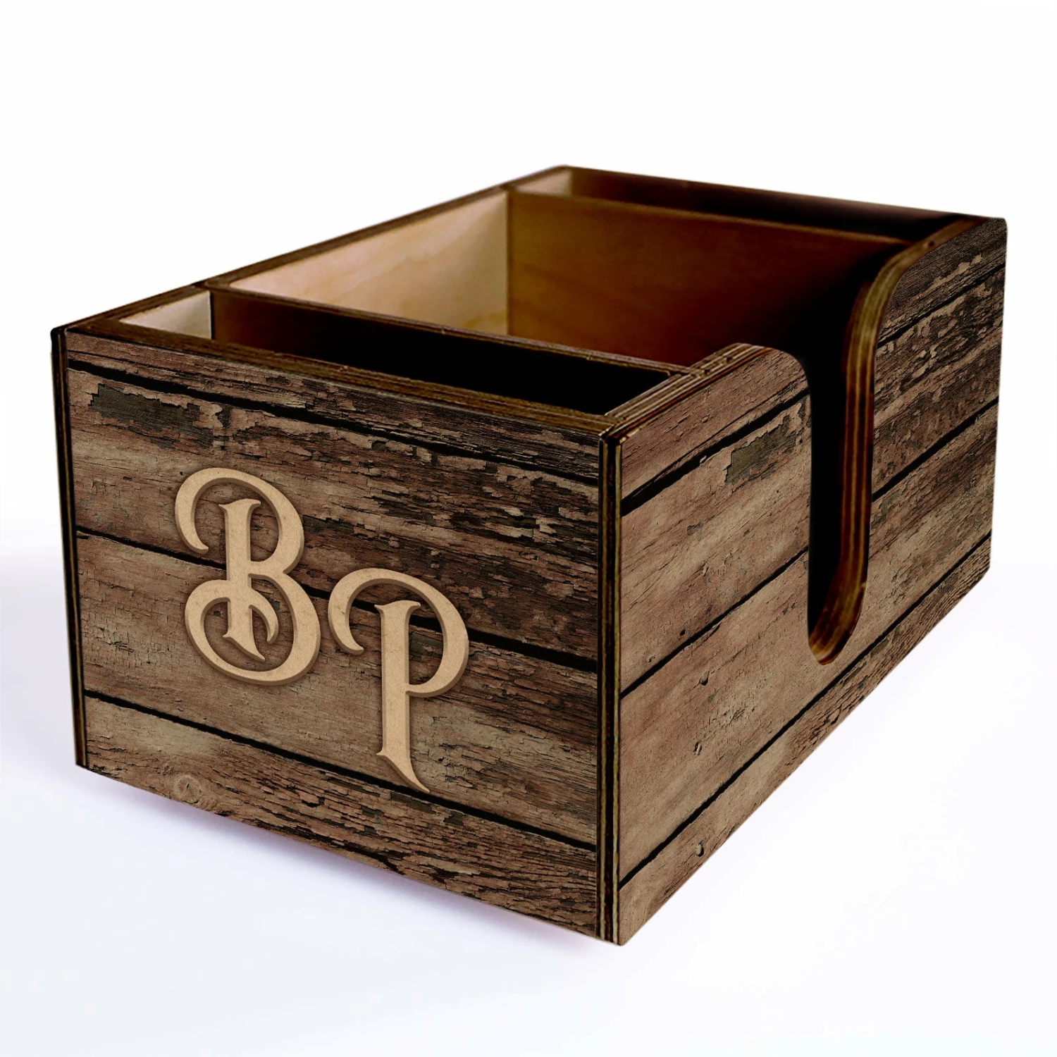 This beautifully rustic Wooden Bar Caddy is an exceptional addition to any type of bar setting! The best part? They are easily customized with your very own name and personalization! Simply type in your text, and we do the rest! The quality of craftsmanship (handmade in the USA) is beyond compare. Designed with 3 compartments perfect for storing your bev naps, straws, and stirrers. Durably built with a quality imprint dyed right into the wood maintains a desirable (and trendy) rustic wooden appeal.