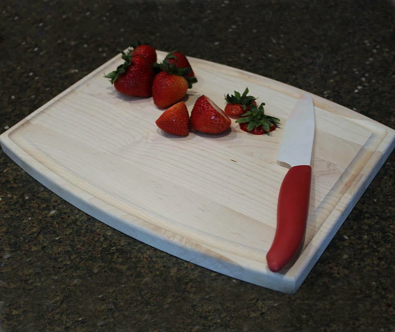 This arched shape cutting board is made of high quality solid Vermont Maple Wood that is intended to last a lifetime if taken care of properly! Hand washing of the board is recommended. It measures 9 inches wide by 12 inches tall. It is also a solid 3/4 inches in thickness. It makes for a beautiful counter piece display that will be ready to use whenever you need it.
