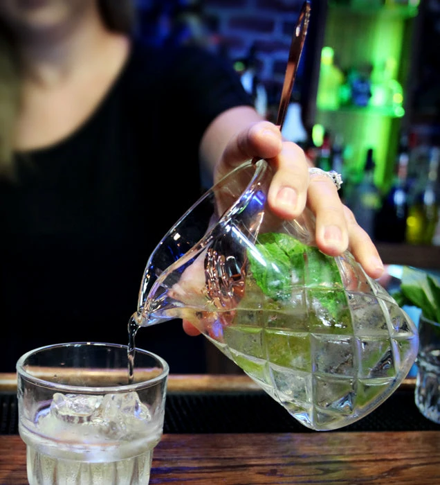 With the sparkle of the classic Japanese style weave pattern and the unique copper strainer this set will look beautiful on any bartop. The texture of this mixing glass not only looks great, but also give the bartender a better grip on the glass when it is wet or cold.