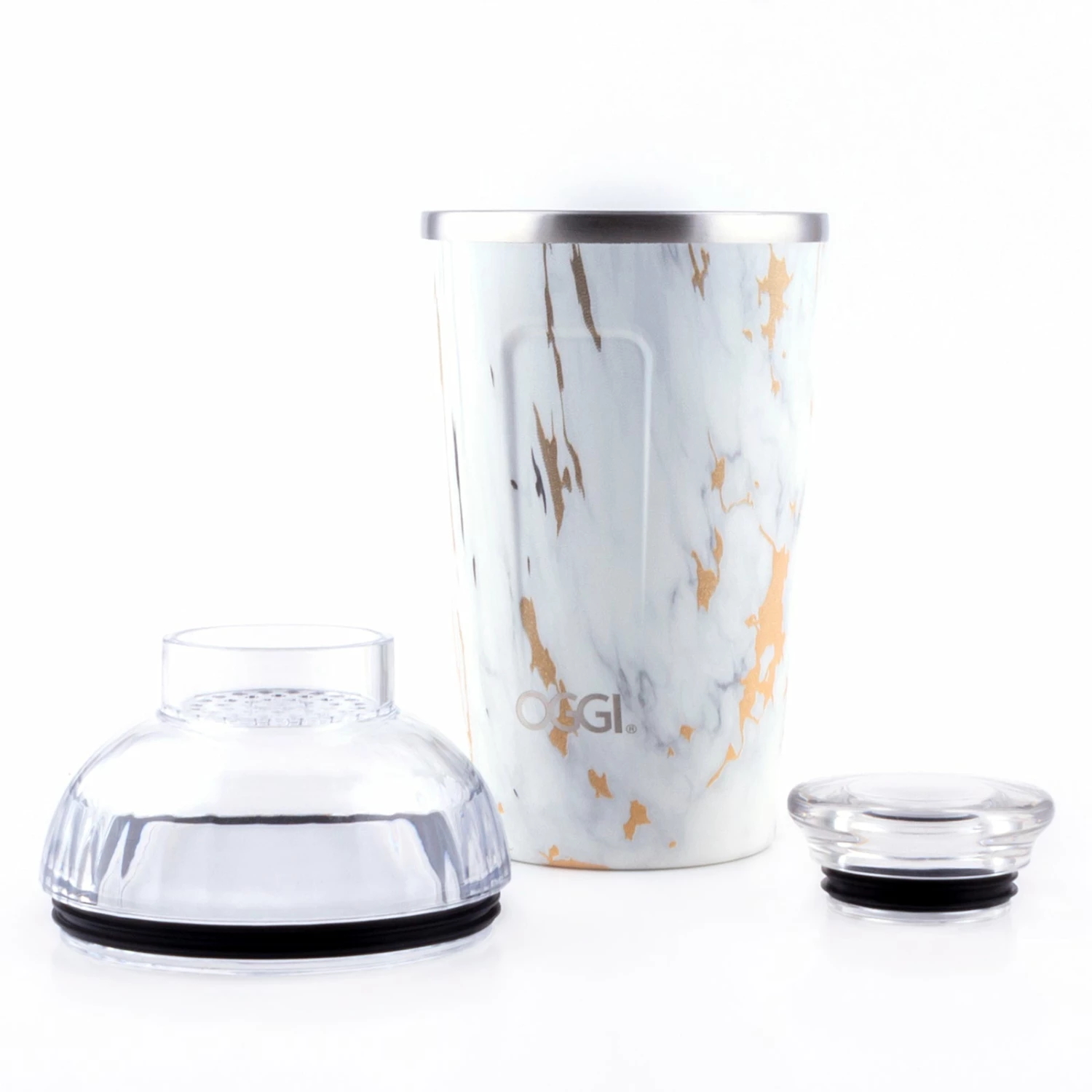 This shaker is bound to be the the most essential bartending piece in your home bar or restaurant. It features a beautiful marble design that is printed all around the shaker. It’s double wall insulation allows your cocktail’s and ice to stay cold for longer and it also allows the outside to not get cold. This shaker comes with an easy to remove drip proof lid w/ silicon gasket to prevent messes and includes a built in strainer.