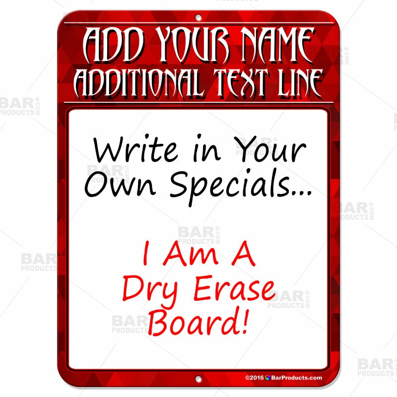 Every bar or restaurant has specials and events they need to promote… it’s what keeps you one step above the competition. There are many ways to get the word out, and this dry erase metal sign is one of the best! This metal “specials” sign is a dry erase board, so you can easily change your specials from day to day or week to week. It wipes away clean with no colored stain left behind. There are 2 small drill holes on the top and bottom, so mounting this sign securely to a wall is easy. Choose from 2 sizes: 12″ x 18″ or 9″ x 12″