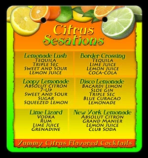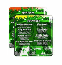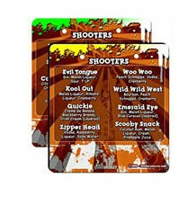 The Shooter Recipe Flip Menus and stand can be purchased separately, or as a group. Want to design your own? Simply visit our friends at LogoBarProducts.com!