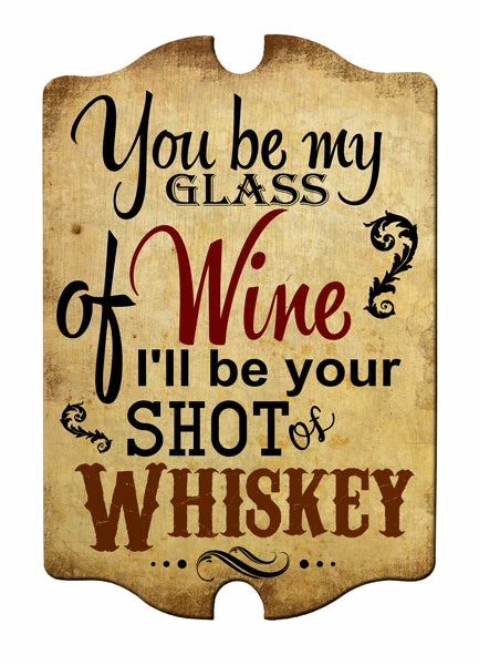 The Glass of Wine/Shot of Whiskey Wood Plaque Sign can be hung in any home or bar. It is made of real wood, and is hand crafted in the USA.