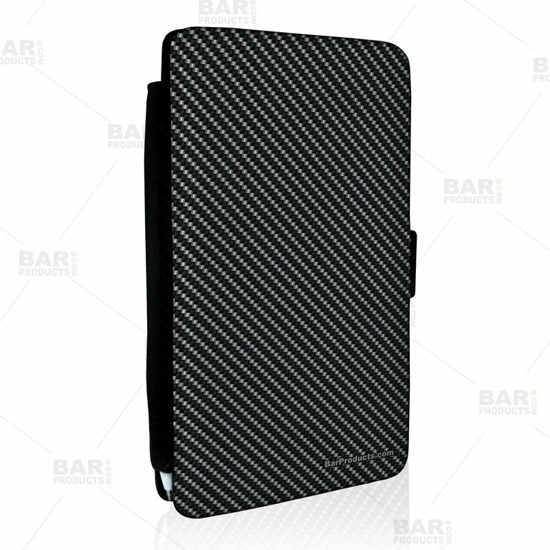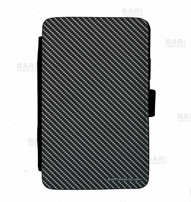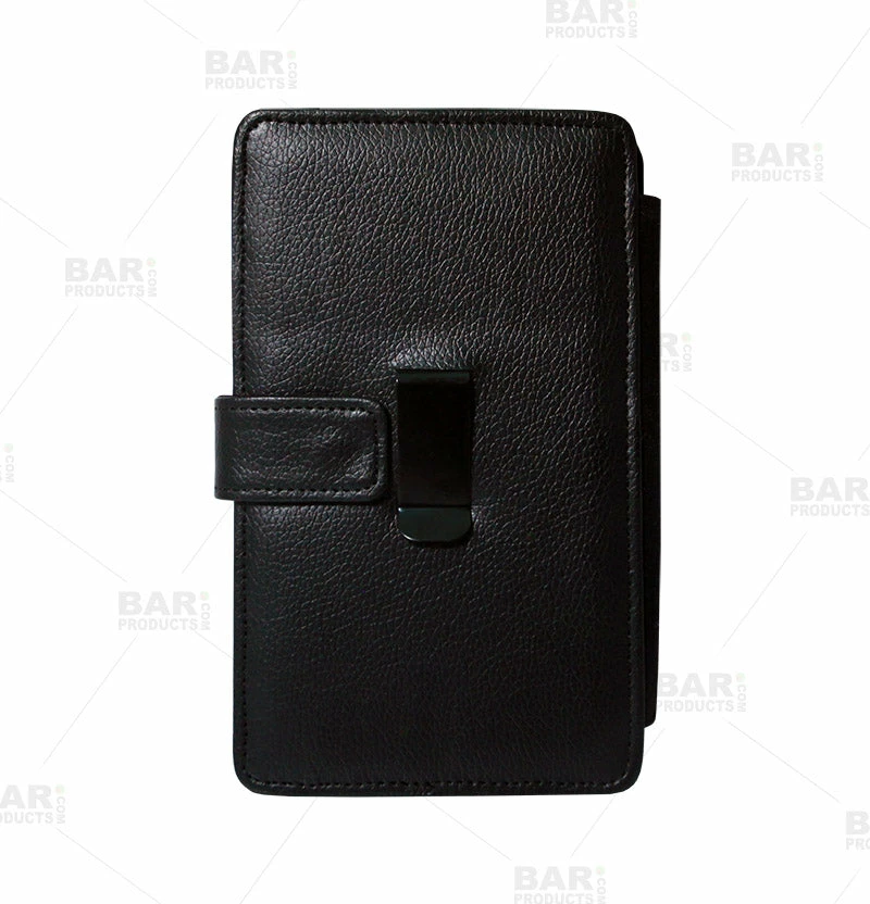 When not in use, the snap button will keep your check pad holder closed and your inner contents safe. Slip it into your apron, or utilize the built in belt clip to fasten to your pants or belt for quick and easy access. Constructed from a leather and polyester material combination, the face of this guest check pad holder showcases a full color carbon fiber design that is perfect for adding a bit of personality to your service.
