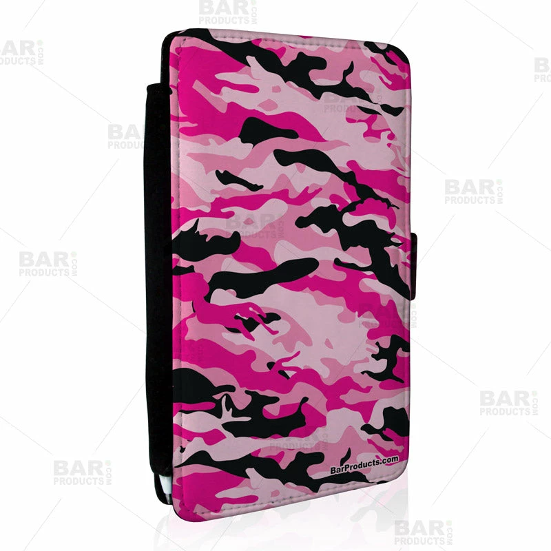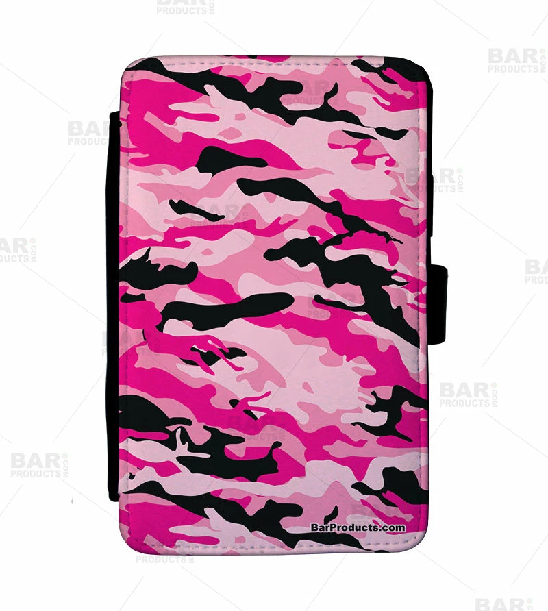 When not in use, the snap button will keep your check pad holder closed and your inner contents safe. Slip it into your apron, or utilize the built in belt clip to fasten to your pants or belt for quick and easy access. Constructed from a leather and polyester material combination, the face of this guest check pad holder showcases a full color pink camo design that is perfect for adding a bit of personality to your service.