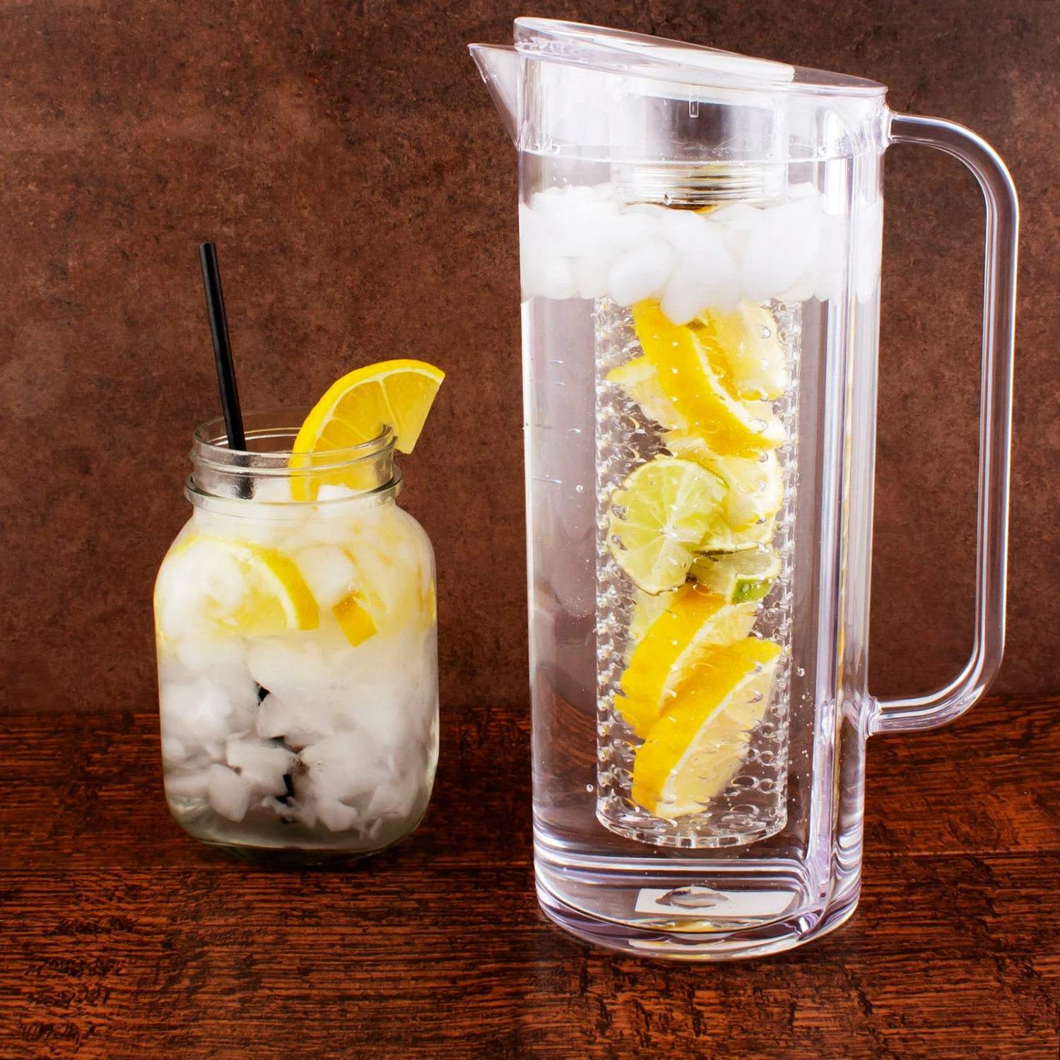 Add a twist to your lemonade, iced tea, water, and more with this beverage pitcher with an infusion chamber. Put fruit in the chamber to give your water or lemonade a nice refreshing taste. You can also add herbs such as mint to give your iced tea an extra layer of flavor. With the help of the infusion chamber, you won’t have to worry about any pulp or seeds getting in the drink. This pitcher is made of durable clear plastic and has a liquid capacity of 64 ounces.