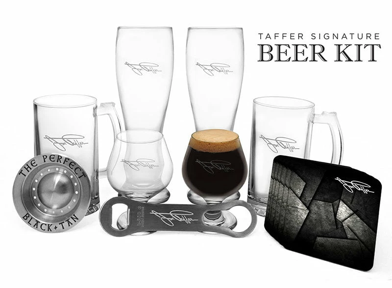 Hand-selected by Jon Taffer himself, this Signature Beer Kit has all of the components you need to serve your brews in style. It offers 3 styles (2 of each) of high quality glassware ideal for serving any type of ale, lager, stout or malt. The 6 pieces of imprinted beer glasses are perfect for any home bar set up and even better for breaking out at your next happy hour party. Also included in this kit is an imprinted Jon Taffer Stainless Steel V-Rod® Bottle Opener, a Black and Tan Layering Tool and a set of 6 stylish (and reusable) Jon Taffer Signature Cork Bottom Coasters. This kit makes for the perfect gift to the beer lover in your life!