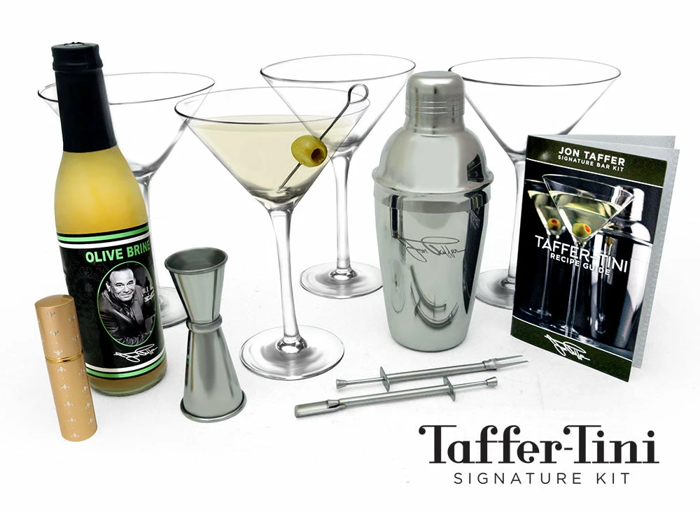Shake and strain the night away with the Jon Taffer Signature imprinted 3 piece deluxe Cocktail Shaker with built in strainer. Made from a quality stainless steel material, the metal works in conjunction with the ice in order to create the most ultimately chilled cocktails. Also included in this set is a 28ml x 56ml rolled jigger that can be used to perfectly measure your ingredients, including Jon’s personal brand of Olive Brine (also included in this kit). Looking for recipe ideas? Well one of the best parts of this bartending set is the Taffer-Tini Recipe guide filled with delicious concoctions preferred and personally recommended by Mr. Taffer.