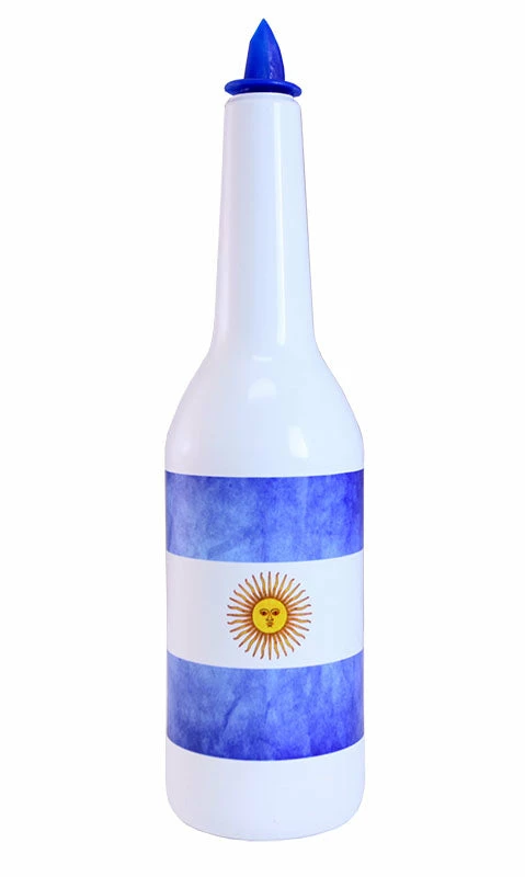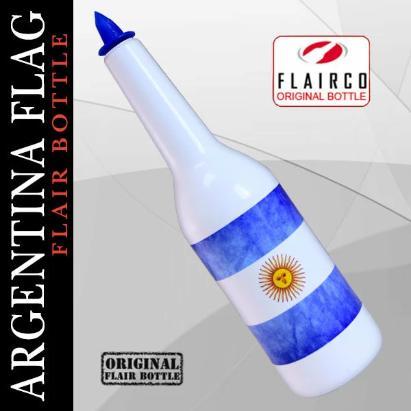 Represent your country! This grungy Argentina Flag design is imprinted on our “Original FlairCo™” Flair Bottle. The FlairCo™ Bottle has been designed to thoroughly mimic the weight and feel of an actual bottle… therefore making your practice time more accurate. The high endurance, one piece plastic injection mold allows for years of practice and growth of your flair skills. They are built to last through the wear and tear of missed catches, and are the perfect flair bottles for an aspiring flair bartender!