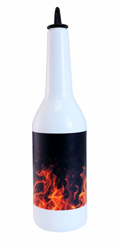 This vibrant flames design is imprinted on our “Original FlairCo™” Flair Bottle. The FlairCo™ Bottle has been designed to thoroughly mimic the weight and feel of an actual bottle… therefore making your practice time more accurate. The high endurance, one piece plastic injection mold allows for years of practice and growth of your flair skills. They are built to last through the wear and tear of missed catches, and are the perfect flair bottles for an aspiring flair bartender!