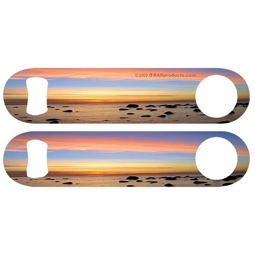 With bottle openers we strongly advise that your text stays at least .25 inches from the edges and holes. Some small discoloration can occur near the opener hole during the print process as the metal is indented to accommodate the function of bottle opening.