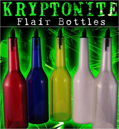 Introducing The Kryptonite™ line of uber strong and basically unbreakable Flair Bottles. Many flair bottles are manufactured using a blow molding process. The Kryptonite™ bottles differ in using an injection molding process instead therefore guaranteeing a perfectly formed, weighted and balanced bottle every time. With a solid feel and grip, these bottles are as good as they get and are made from our trade secret Kryptonite™ material. We offer several different 750ml styles and colors, from transparent NEON colors that glow vibrantly under a black light to a solid standard white.