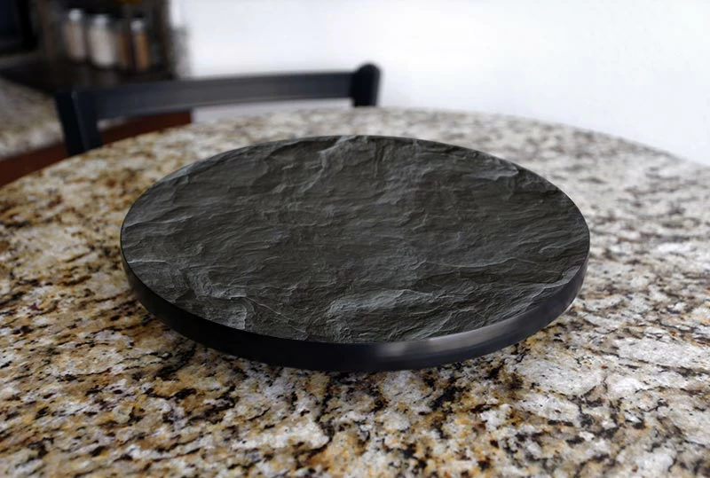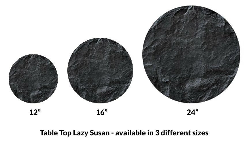 These beautiful WOODEN Lazy Susans are 3/4″ thick, and come in three different sizes, 12″, 16″, and 24″, meaning there’s a size available for any table or counter space. The round base is sturdy, and the spinning mechanism is well-built and allows for smooth, easy spinning, and featured 4 rubber stoppers that protect your table top from wood scraping. The Lazy Susan is wrapped with rubber black T-molding that protects the side of the all-natural wood top.