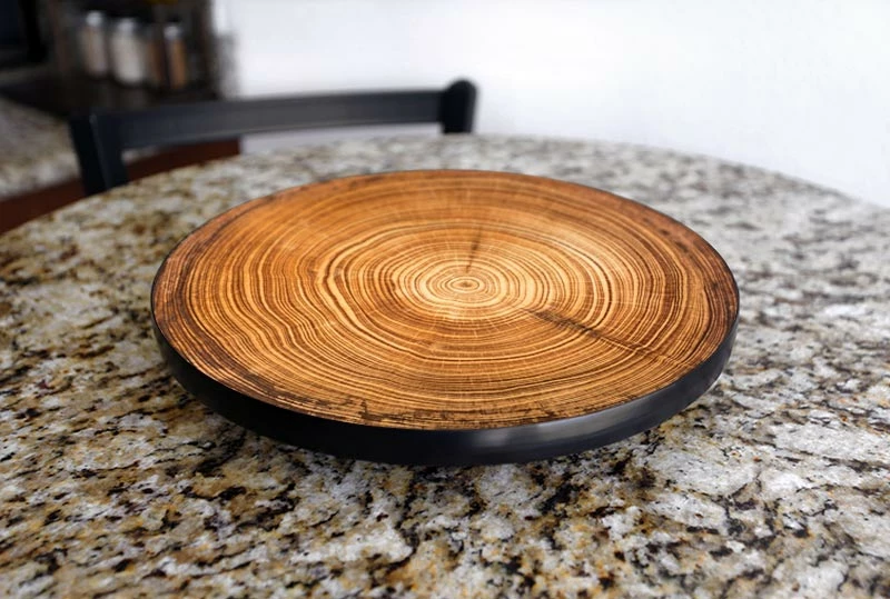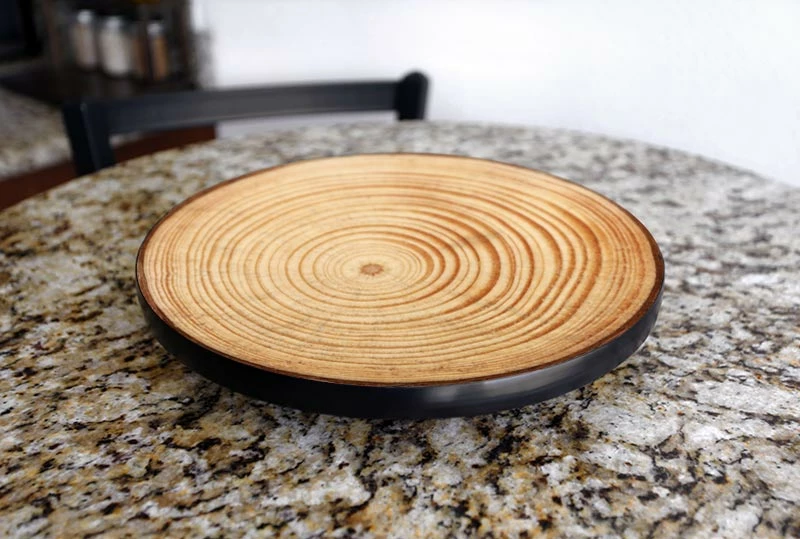 We offer three different tree ring designs for these table top Lazy Susans. Each full color design is carefully applied using our unique Kolorcoat™ process that allows the vibrant colors to shine through.