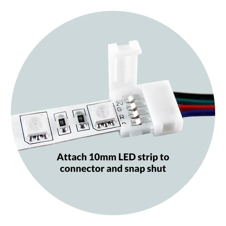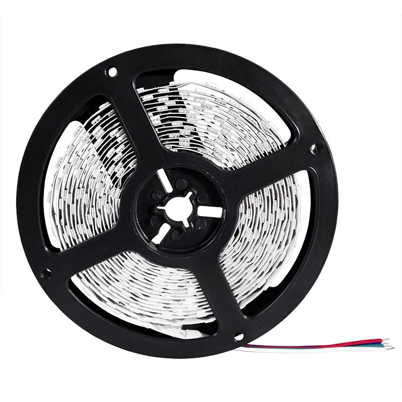 Included in the kit are a 5 meter/16.4 FT long LED 5050 IP20 Light Strip (10mm). The strip has an adhesive backing allowing for easy application. The LED lights are SMD 5050 (meaning 5mm x 5mm chips) which produce the brightest lights found in LED strips. This 16.4 foot (5 meter) roll features 18 LEDs per foot.