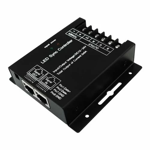 This 20-key RF controller has an advance micro control unit used for controlling LED lights and works perfectly for our LED light strips. Connecting to existing strips and LED lights is easy and simple to use. Featured an RF 20 key remote control that allows you to choose from several colors and change dynamic modes such as brightness. The synchonization function allows you to sync LED lights between different units. The RJ45 connector allows users to connect multiple controllers together and sync several LED strips.