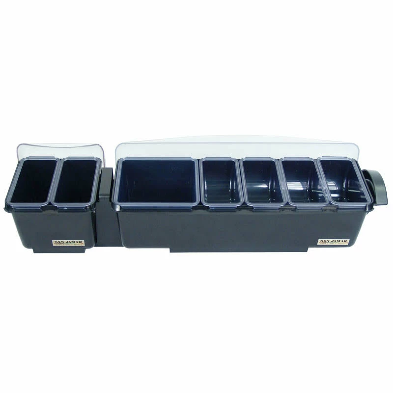 The all-in-one garnish solution designed by bartenders for bartenders. Tailored to fit on standard mixing rails, The Mini Dome features a patented dome lid that rotates back for easy access and increased capacity when closed. Integrated snap-on caddies store straws, stirrers and picks. The new 1 quart and 1.5 pint “deep tray” increases the capacity options. The Mini Dome is the perfect solution for garnishes, condiments, toppings and more!