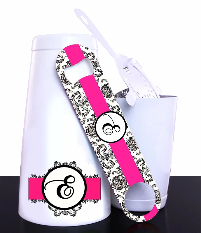 The ideal set for lady bartenders who would like to add a little unique elegance to there bartending collection. The monogram is a classic way to personalize any item and now you can personalize your bar gear too.