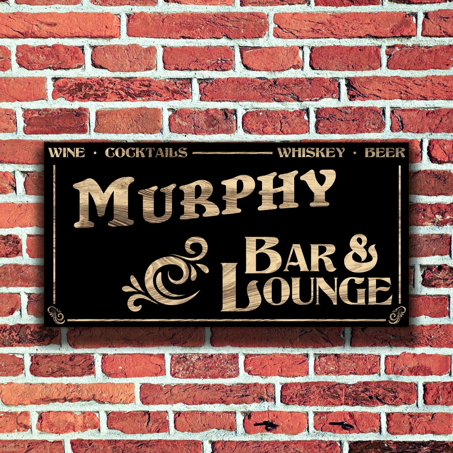 The Murphy WalBAR™ is built in our USA-based woodshop. It has been meticulously designed in favor of the home bar enthusiast. Measuring 18″H x 36″W x 7.5″D it securely attaches to your wall space with a French Cleat (included). When not in use, the bar can remain latched and closed to showcase a fun design such as this Customizable Bar & Lounge theme design. All you need to do is type in your text with your personal information and you have yourself this gorgeous signature piece. The unprinted sides, top, bottom, and inside are finished with a beautiful black matte coating.