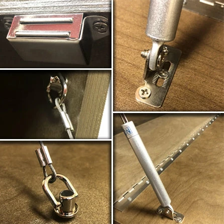 When you are ready to use your bar, simply unlatch and open the door to create a bar top area. It is designed with a stainless steel gas shock, allowing for smooth resistance when opening. But wait! The best part is the contents inside your Murphy WalBAR™! Featuring 3 compartments inside, you’ll find it the perfect space to store several of your favorite spirits, glassware of choice as well as your bartending tools! The right compartment of the bar measures 10″ in width and features an adjustable 4-pin shelf with a total of 9 adjustable options. See below for more construction features.