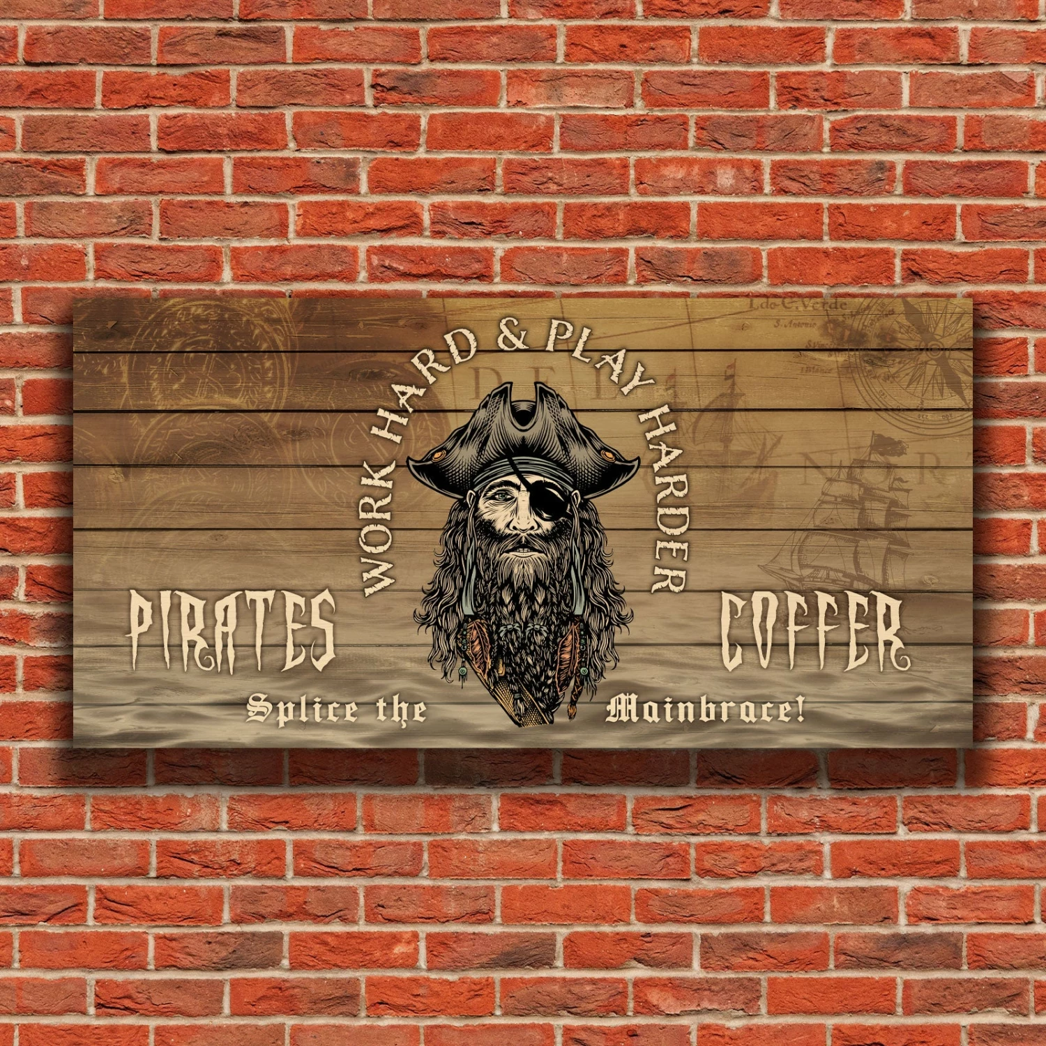 The Murphy WalBAR™ is built in our USA-based woodshop. It has been meticulously designed in favor of the home bar enthusiast. Measuring 18″H x 36″ W x 7.5″D it securely attaches to your wall space with a French Cleat (included). When not in use, the bar can remain latched and closed to showcase a fun design such as this Customizable Pirate theme design. All you need to do is type in your text with your personal information and you have yourself this gorgeous signature piece. The unprinted sides, top, bottom, and inside are finished with a beautiful black matte coating.