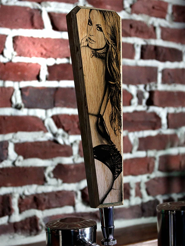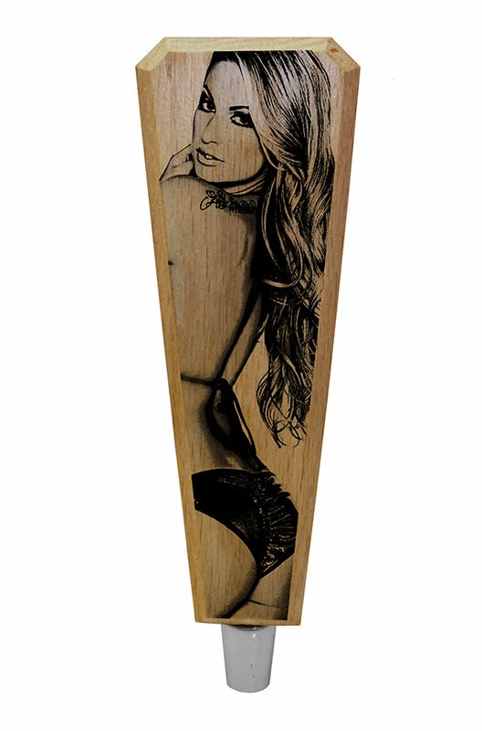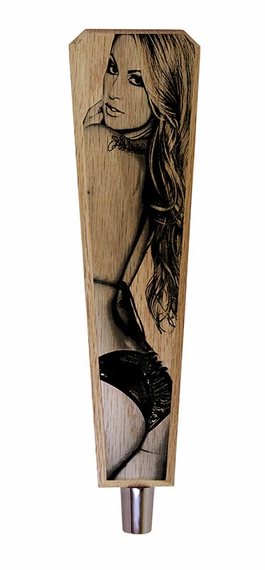 This “sexy lady” design is a stellar option when you are looking for the perfect beer tap handle to decorate your man cave or recreational room. She is sure to add a hot element to your décor, and is very inviting to your thirsty buddies. High quality graphic blends perfectly with the natural wood grains of the oak.
