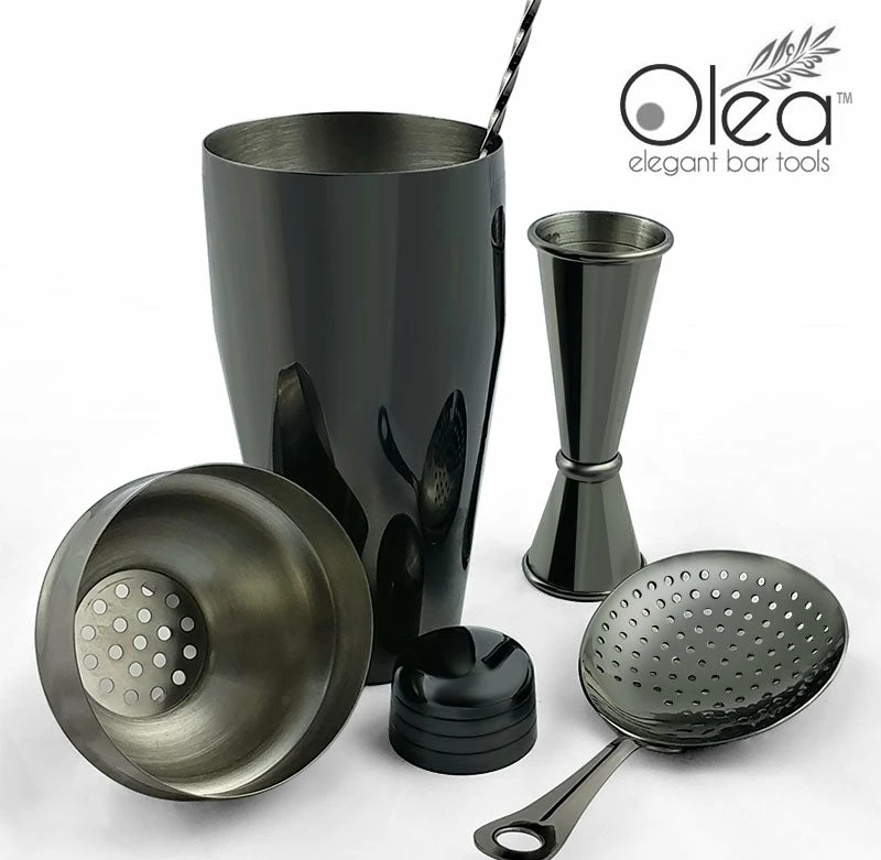 Absolutely exquisite are the perfect words to describe this stunning Gunmetal Plated 4 piece Bar Set. A collection of many first editions of our line of Olea™ Elegant Bar Tools, this bar kit is every master mixologists and professional bartenders dream bartending kit. The high quality pieces are constructed from a durable stainless steel material and then beautifully plated with a reflective Gunmetal finish.