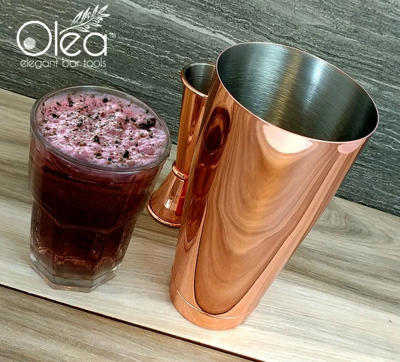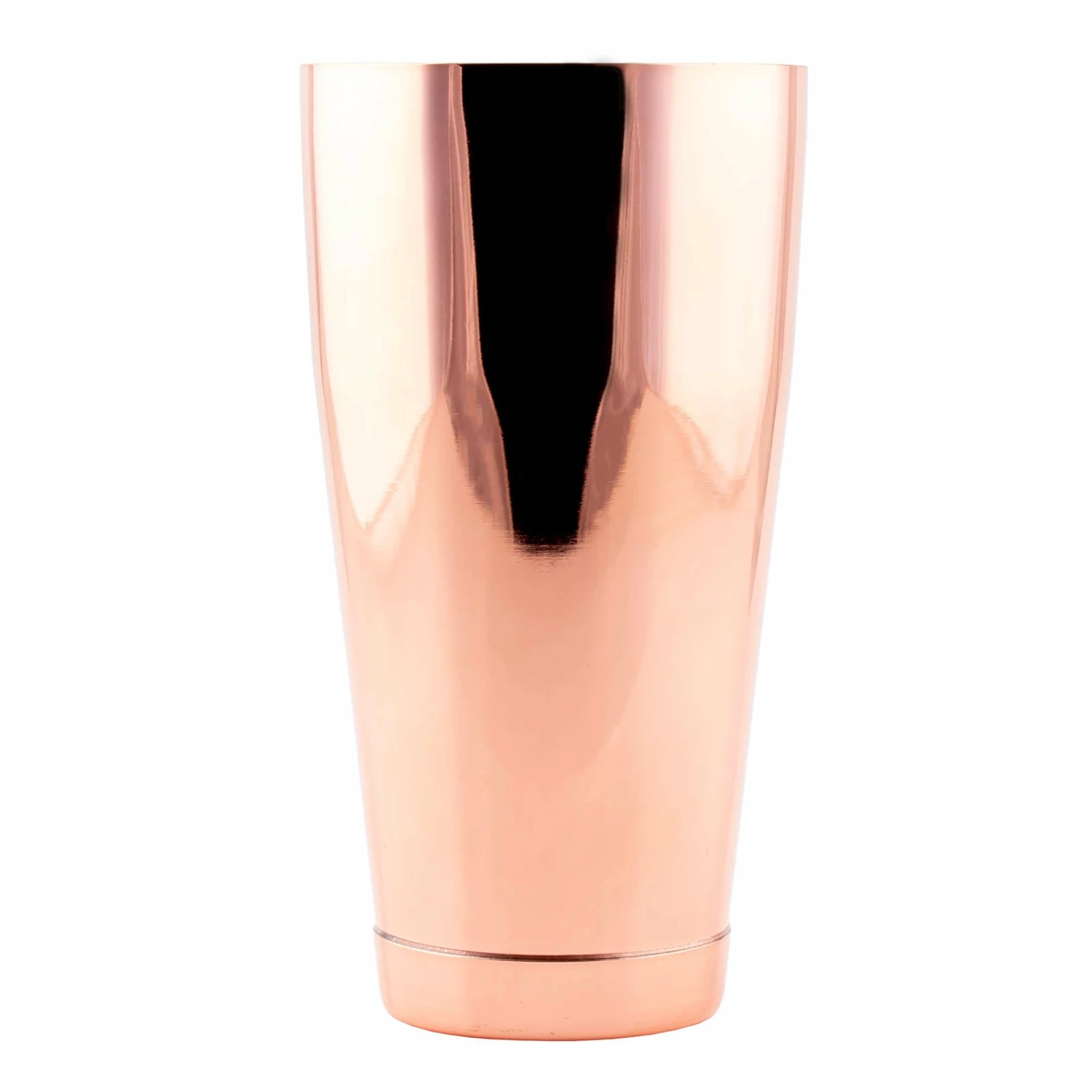 A stunning twist on a classic bar tool. This elegant Copper Plated Cocktail Shaker Tin will start getting you excited to shake up your favorite spirits in style. One of the first editions to our line of Olea™ Elegant Bar Tools, this 28 ounce shaker tin is every master mixologists and professional bartenders dream bar tool. This high quality piece is constructed from a durable stainless steel material and then beautifully plated with a reflective Copper finish.