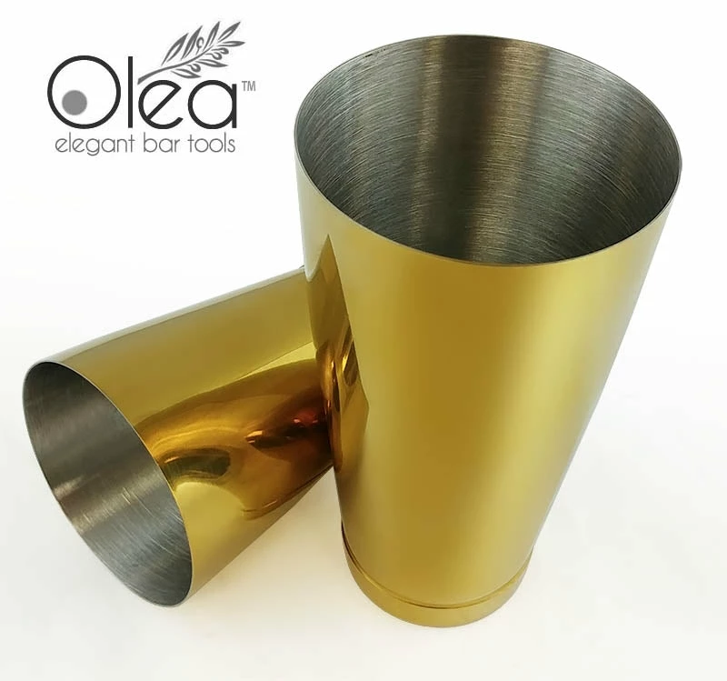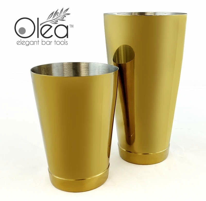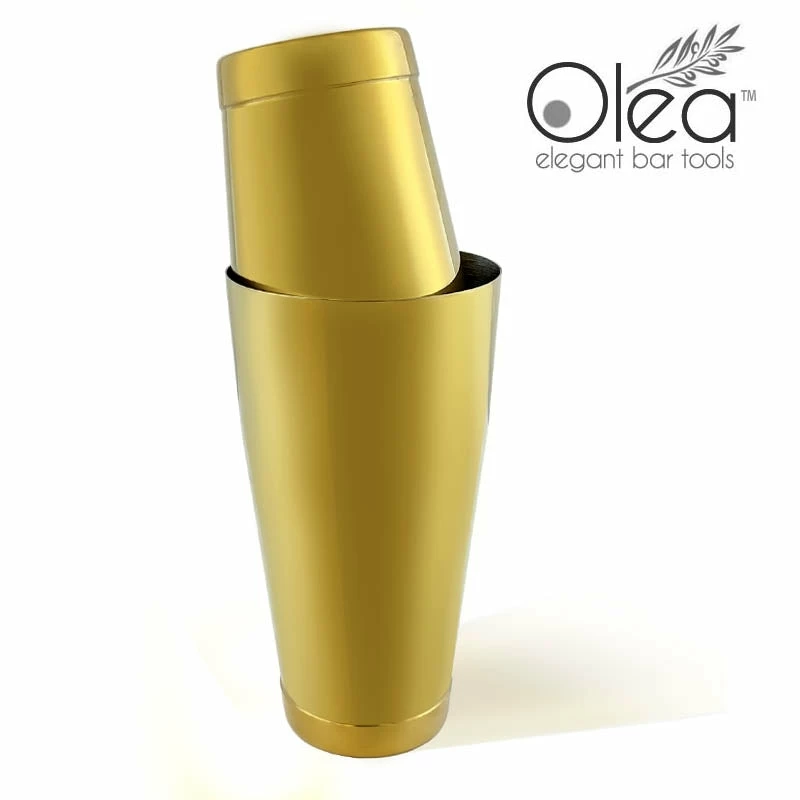 Absolutely exquisite are the perfect words to describe this stunning Gold Plated 2 piece Shaker Set. A collection of many first editions of our line of Olea™ Elegant Bar Tools, this bar shaker set is every master mixologists and professional bartenders dream bartending kit. The high quality pieces are constructed from a durable stainless steel material and then beautifully plated with a reflective Gold finish.