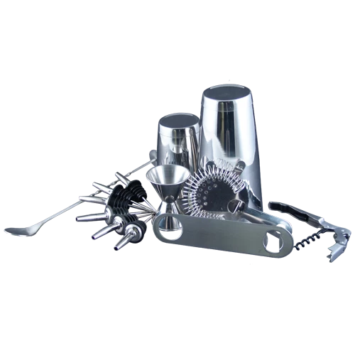 This Premium 13 Piece Bar Set is a great starter kit for your money. It includes all of your most commonly used, basic bar tools from shakers to jiggers, all stainless steel. This is the perfect kit for a home bar enthusiast who is looking for a professional touch!