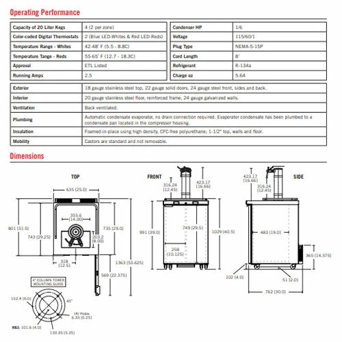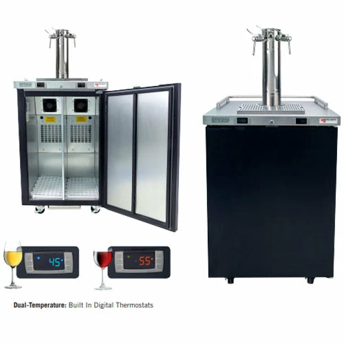 Wine On Tap! This wine dispenser keeps wine fresh for 60 days. Create better profit margins with the pour consistency from first to last glass. No bottles, no stock or recycle, no corks to pull. Low maintence cost with digital thermostat to set precisely for white and red wines. Fine wines now in kegs, a great value with minimal waste and stays fresh till poured. Tapping equipment not included, order separately. Outside dimensions: 25″W x 31-1/2″D x 39″H and inside dimensions: 20-3/4″W x 19″D x 29-1/2″H. Free shipping