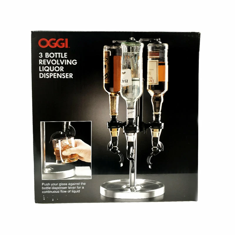 This easy to use liquor dispenser is great for man caves, kitchen countertops, home bars, and more. The gravity fed system makes pouring a drink quick and easy. Spring loaded adjustable stand holds 3 bottles of any size. The sleek heavy weight base and pillar ensure excellent stability. Just push your glass to the bottle dispenser lever for continuous liquid flow. Recommended that you clean the unit when changing bottles as residue can slow the flow of liquid.