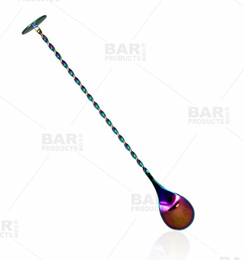 This Rainbow 4 Piece Barware Set comes with everything you will need for crafting the perfect cocktail. Included is an 18oz shaker, bar spoon, double jigger and cocktail strainer. Purple and blue tones are mixed beautifully to create an oil slick colored finish over the stainless steel barware set. The stainless steel build makes for a strong durable product that will be with you for a long time. So not only is this set visually striking it is also highly functional and the trendy coloring will stand out and pop in any club or bar!