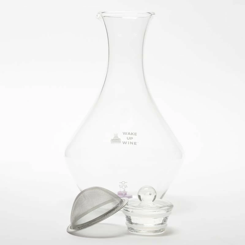 750 ml Premium, Lead-Free Glass Decanter with Airtight Glass Stopper for the WAKE UP WINE and WAKE UP WINE PRO electronic decanters. Impress your guests with its sleek design. It’s dishwasher safe and made of recycled glass. It’s a great conversation piece making it a beautiful addition to any kitchen, bar or table. Regulate your pour using the measuring marks at 4, 6, and 8 oz.