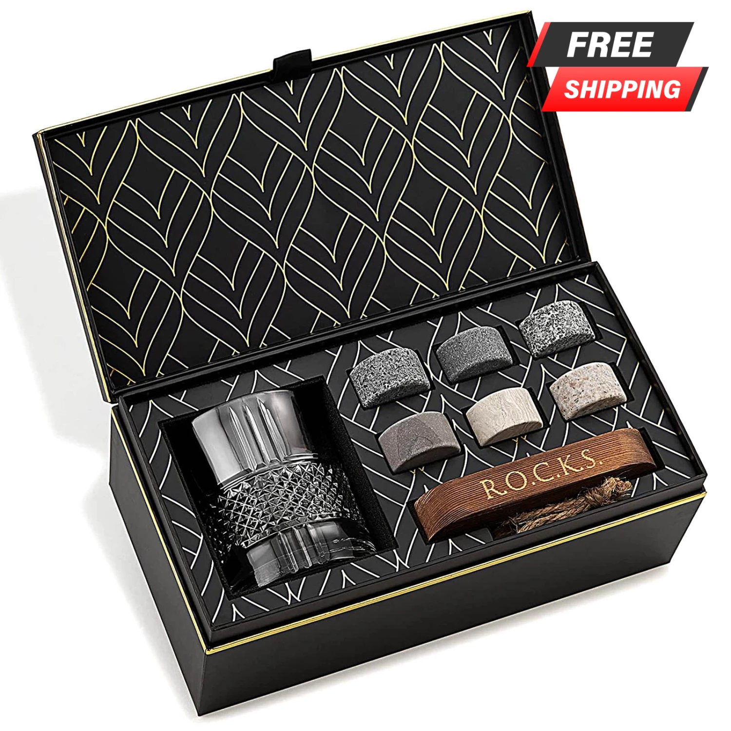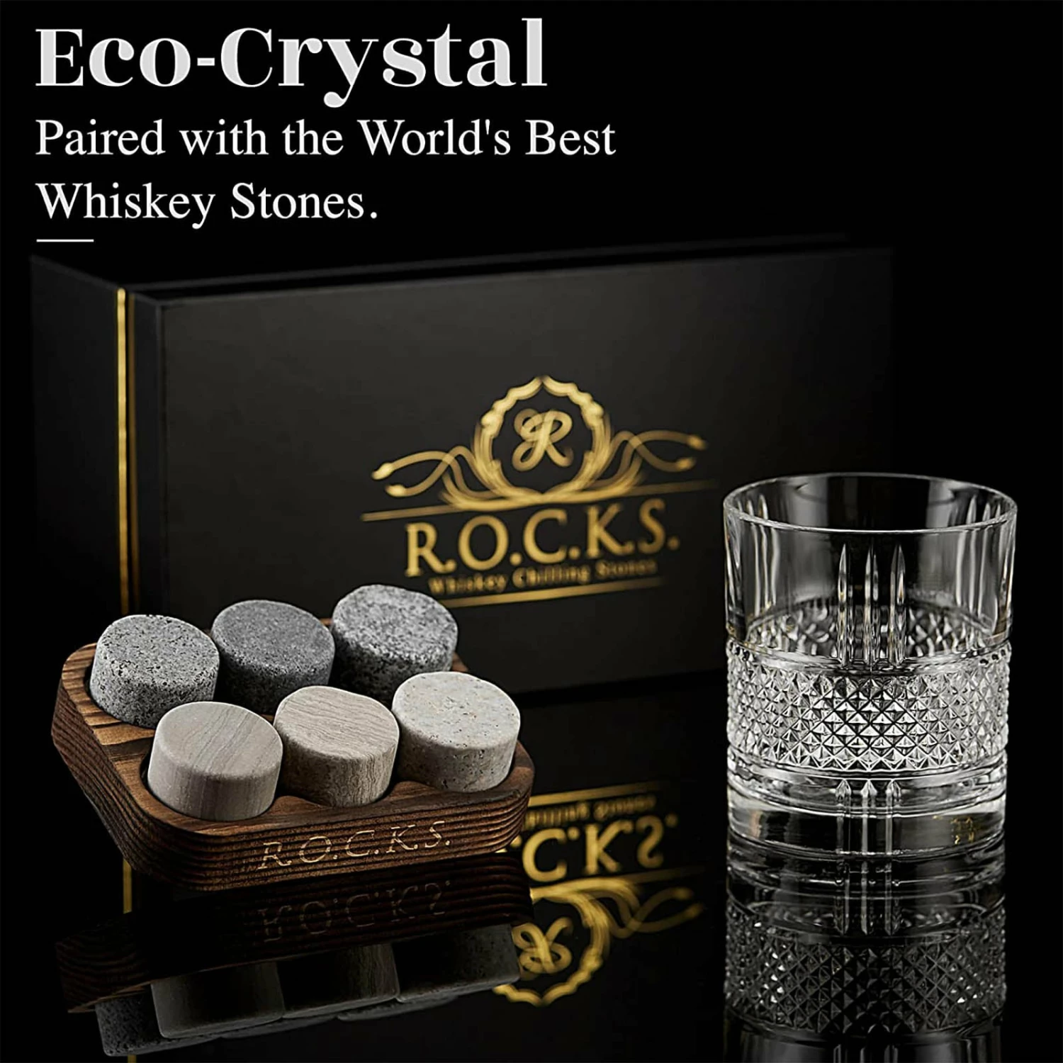 Original Rocks paired with a Reserve Crystal whiskey glass. The round solid granite whiskey stones cool your drink without the dilution found from traditional melting ice cubes which will alter the true taste of spirits. Each whiskey stone has a different color and granite-style making each set unique and stand out beautifully. Elevate the subtle, balanced flavors of your whiskey as our heavy tumbler sits comfortably in your hands. Bringing style and sophistication to your intimate whiskey tasting nights. The Reserve glass allows for a pleasant swirling experience.