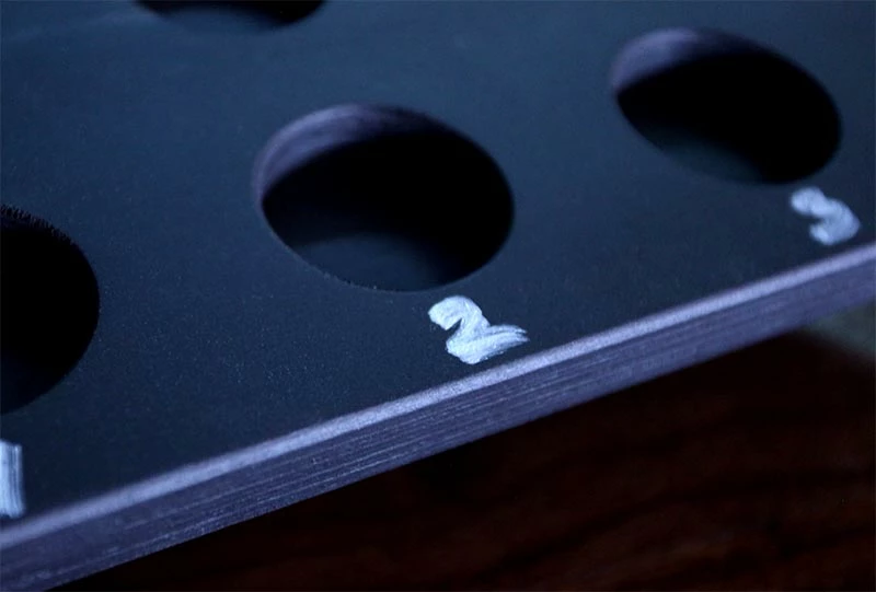This unique paddle is a fun new way to serve guests samples of shots, beers, liquor, shooters, and more! This 17.5 inch wooden tasting flight paddle is completely covered in chalkboard paint, meaning you can write whatever you wish on the paddle. You can also have the customer write on it. The predrilled holes are 1 5’8″ in diameter.