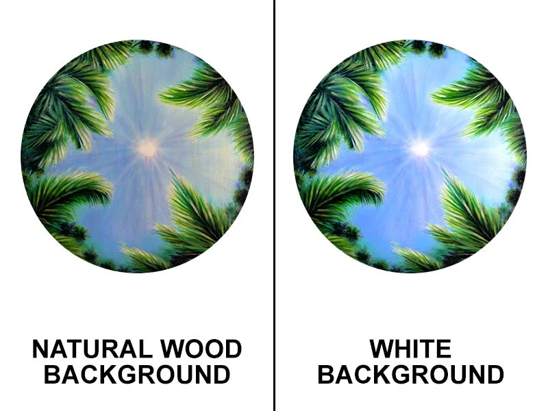 Available in either a Natural Wood background or a White background. The texture of the wood shines in the Natural Wood option, while the whites from the art are more vivid with the White option.