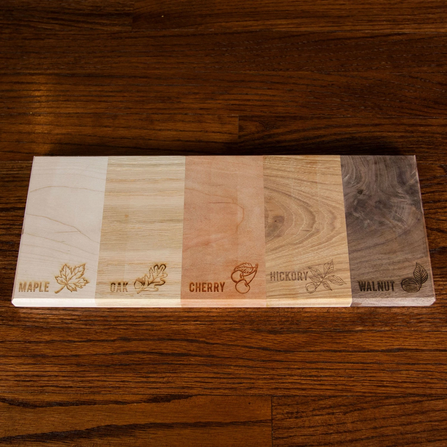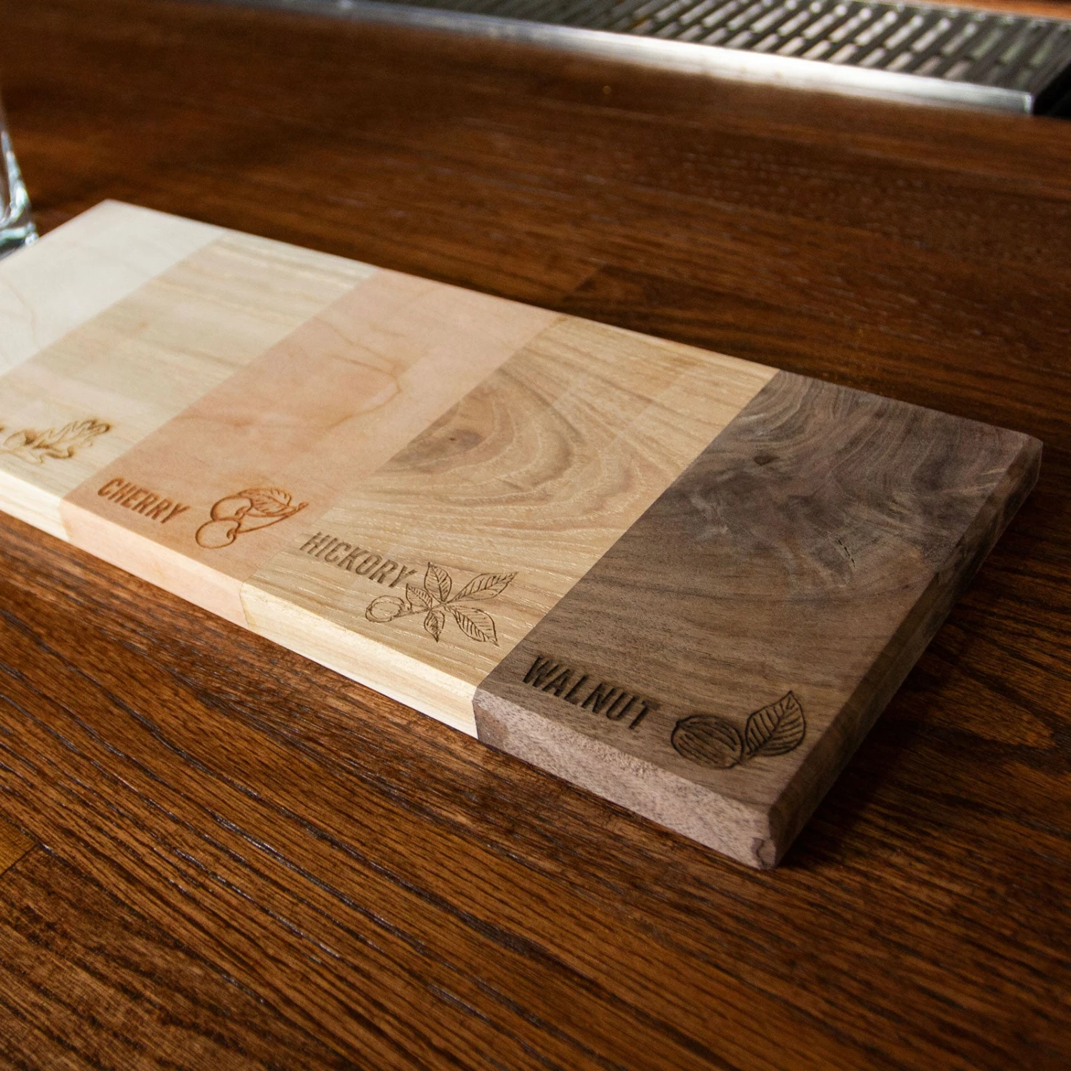 - Flavors are lasered into each wood slab that labels each wood