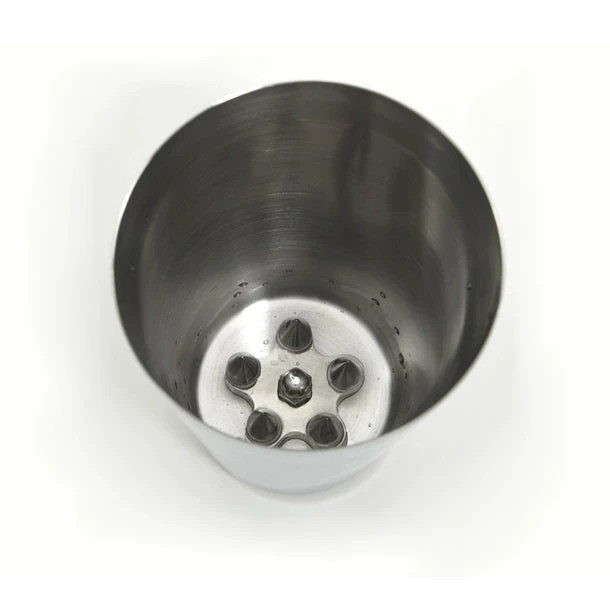 Taking the essential cocktail shaker to another level, these Spiked Ice Chipping Shaker Tins have five metal spikes attached to the bottom, allowing you to easily muddle and chip ice on the shake. No more diluted drinks and unnecessary steps, these durable stainless steel tins give you added efficiency, saving you time.