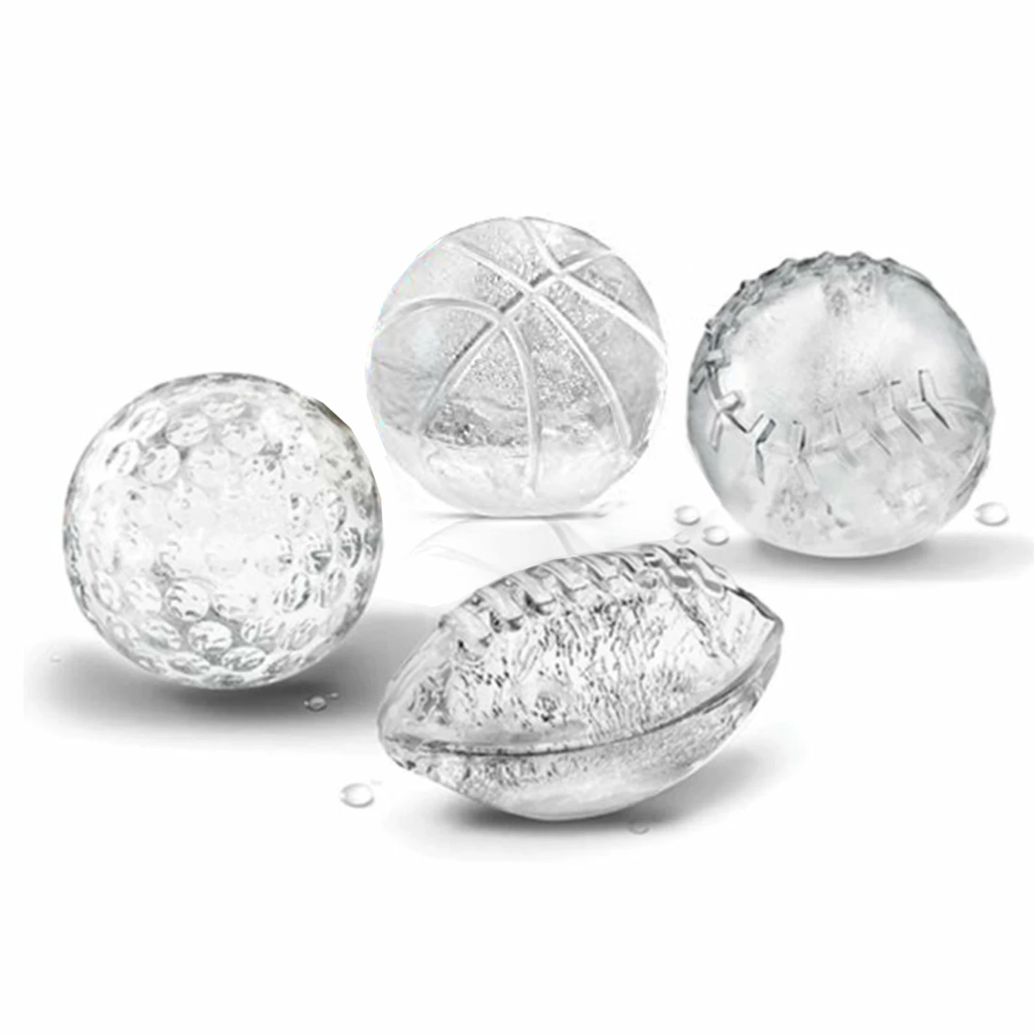 - Set of 4 includes Football, Baseball, Basketball and Golf Ball shaped ice molds