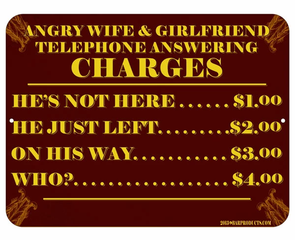 An instant classic. This funny bar sign let’s your male patrons know you’re no covering their behinds for nothing! It’s your bar, your rules.