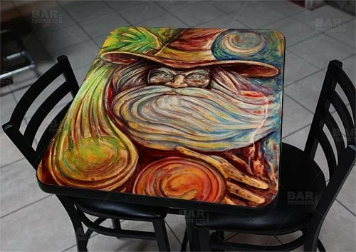 The Wizard 24″ x 30″ Wood Table Top features the beautiful art of Brian Mohr, one of many Featured Artists here on BarProducts.com. Click here to see more Featured Artists.