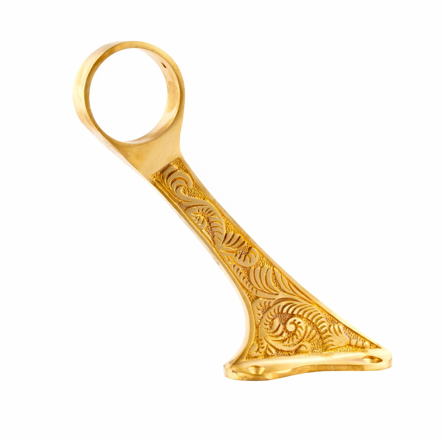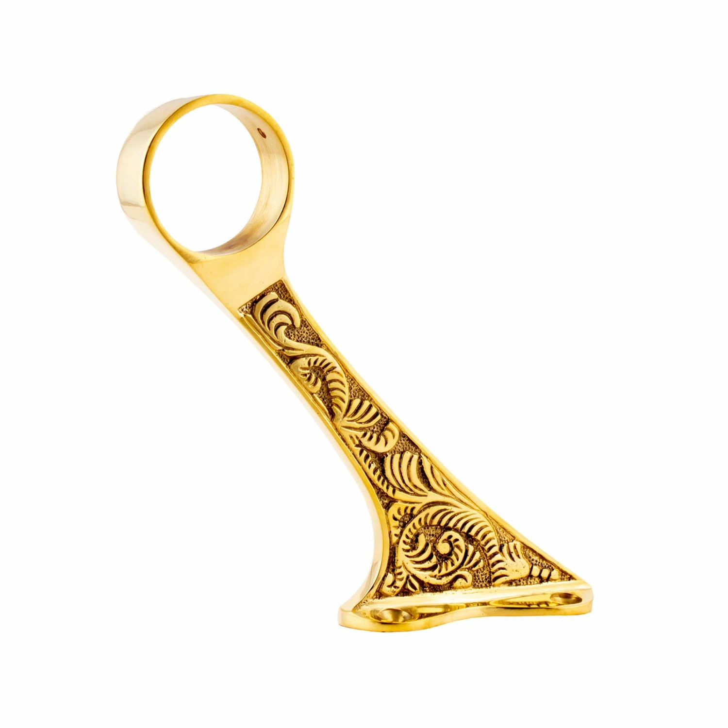 This stylish Victorian bracket adds a beautiful and decorative design to your professional or home bar. This type of bracket combines a design where the tubing looks like its floating next to the bar with beautiful Victorian floral etched art throughout the base. This mount is available in 4 different finishes from stainless steel to brass. Bracket comes with instillation kit.