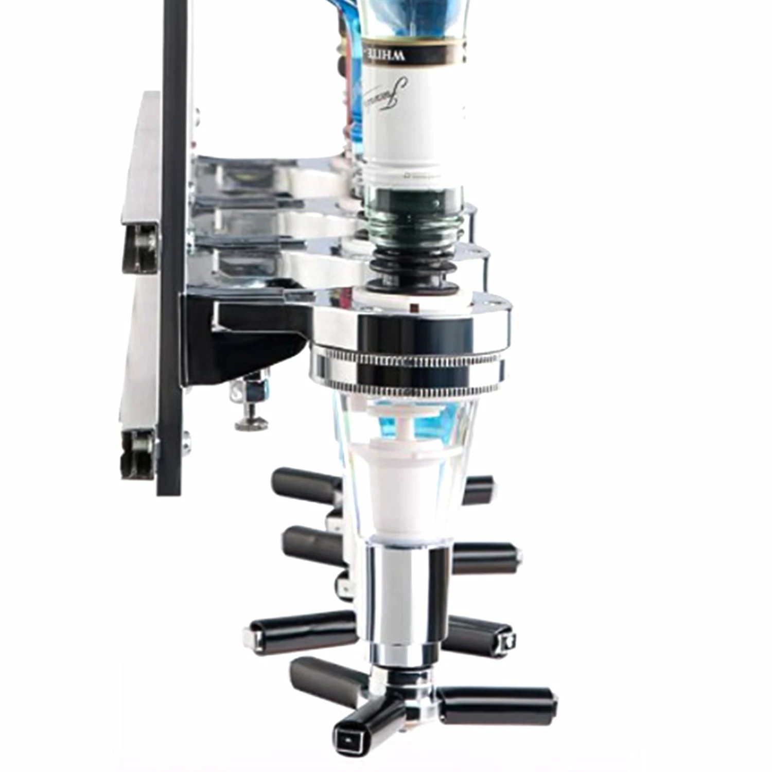 Final Touch Wall Mounted 4 Bottle Liquor Dispenser. The slim aluminum profile allows this dispenser to be installed almost anywhere, freeing up your shelf space. The spring holders with rubber tops ensure a snug hold on any bottle 13” (33cm) tall or less. Each dispenser is leak proof and measures out 1.5 oz shots every time. Simply load the bottles and place glass directly under the dispenser, then simply push up on the trigger and let gravity do the work! Easy to install and use. Measures 14” W x 14” H x 4 ½” D.