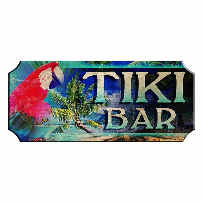 Whether you operate a tiki bar, or you have turned your home into an island escape, this tiki bar sign is perfect to add to your bars décor. A colorful parrot inspired design with a touch of grunge and then paired up with the natural grains of the wood gives this sign the perfect island vibe.