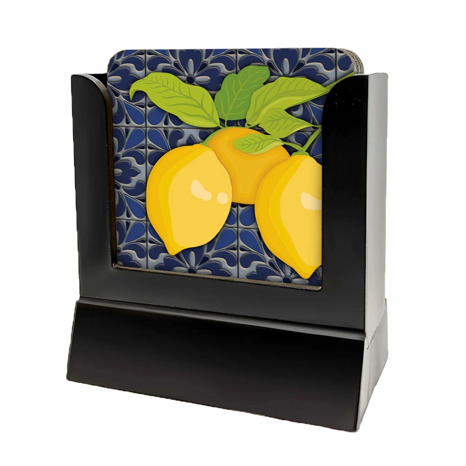 Looking for a non-disposable coaster solution that will look phenomenal displayed on your bar or table tops? How about one that showcases a trendy “Lemon Tile” design theme? These custom wood coasters are just what you’ve been looking for! Handcrafted in the USA, these high-quality coasters allow for full-color design for your customization. These coasters also make for a great gift idea! 4-inch square shape with rounded corners. Sold in packs of 4 with a wooden coaster caddy. Pair it with our Custom Wooden Lemon Tile Design Napkin Caddy.